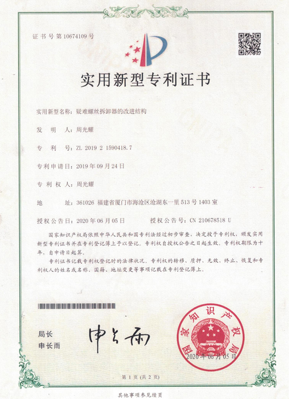 自主知識(shí)產(chǎn)權(quán),無(wú)需焊接、不用切割、不破壞任何部件,可無(wú)損拆缷市面上所有的防盜螺絲以及平面的普通螺絲。