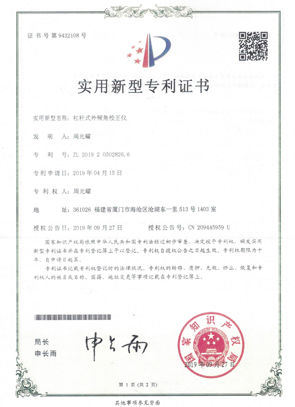 杠桿式外傾角校正儀專利