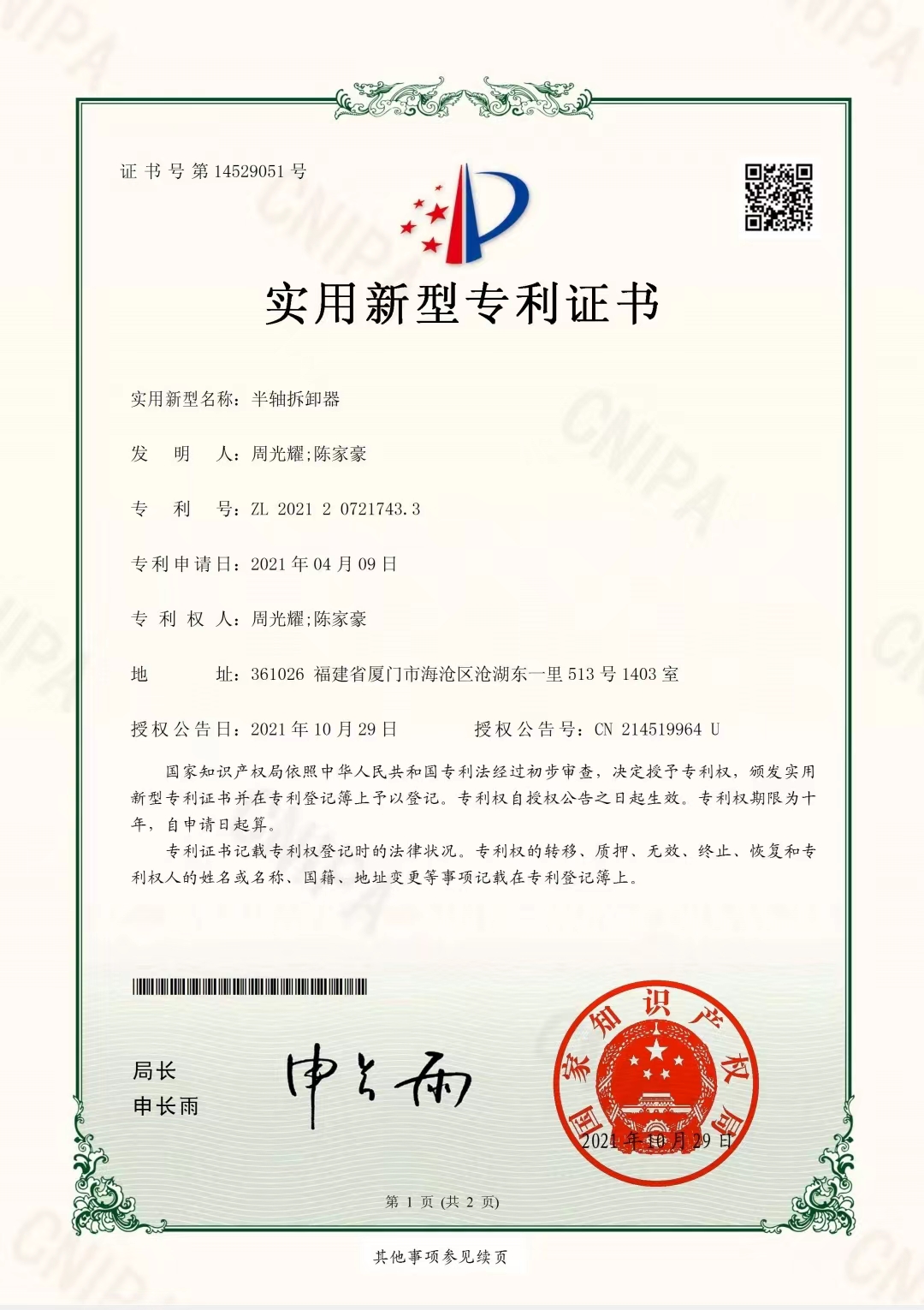 中國(guó)(福建)自由貿(mào)易試驗(yàn)區(qū)廈門片區(qū)青礁大路177-12號(hào)(周功機(jī)械)
