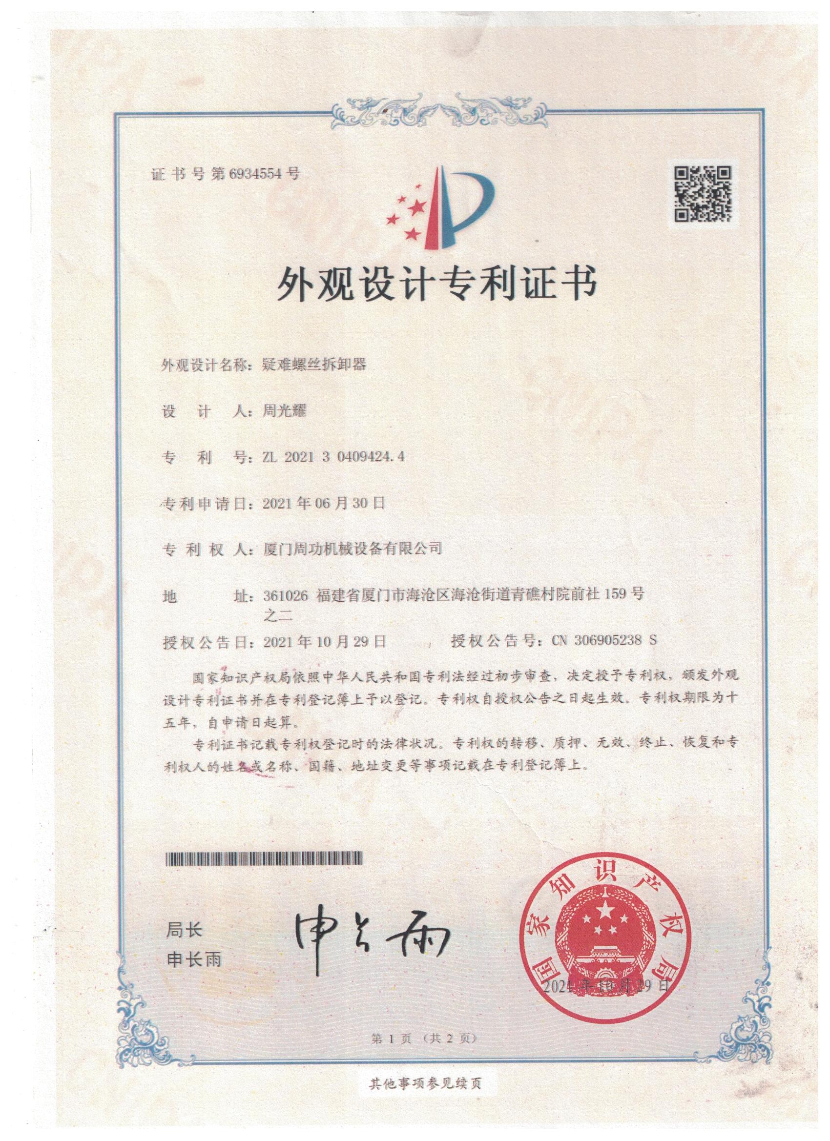 疑難螺絲拆缷器專利