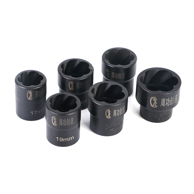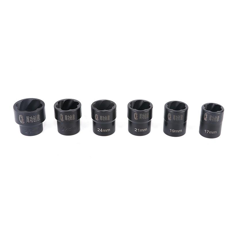 周功疑難螺絲拆卸輔助六件套是周功疑難螺絲拆卸器的輔助工具。本公司根據(jù)市場及客戶要求自主研發(fā)的一種集經(jīng)濟(jì)、高效、實(shí)用新型拆卸汽車(小轎車)防盜螺絲及普通螺絲拆卸專用套筒。周功疑難螺絲拆卸八件套包含17-26珞鉬鋼反牙套筒、可伸縮扳手。路虎專用套筒、市面上的螺絲如平面帶凹槽、內(nèi)置式帶花鍵的、冒式防盜螺絲或普通螺絲外圓滑牙就用相對應(yīng)的套筒,輕松搞定。