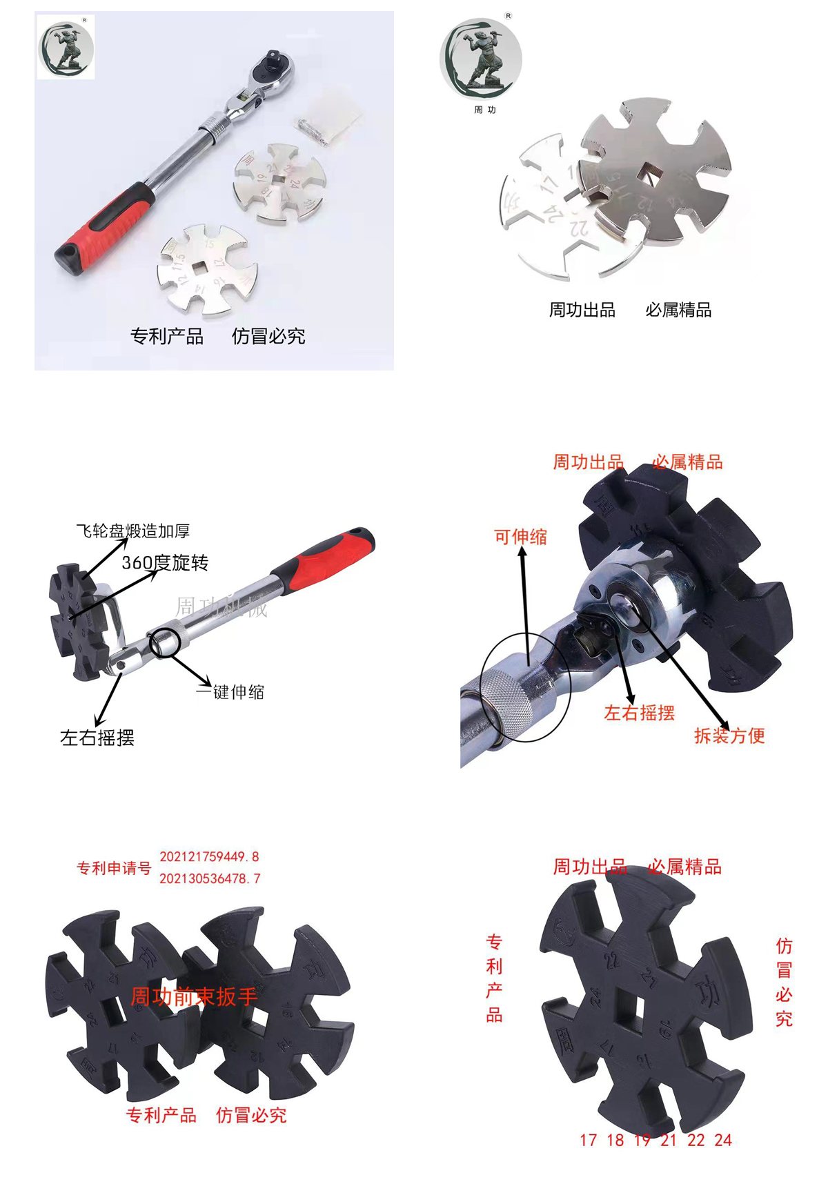 倒鉤槽防滑落、再加360度旋轉(zhuǎn)和90度左右搖擺、不滑落又能用上力,只要一把扳手難拆銹死的前束螺絲就迎刃而解了。
